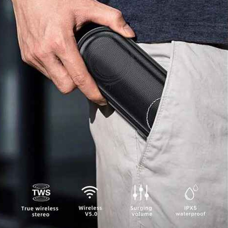 Cạnh sau của loa được thiết kế một cổng micro USB, một cổng Audio tương thích với jack cắm 3.5mm và một cổng để cắm thẻ nhớ. Loa hỗ trợ thẻ nhớ TF 32GB nên bạn có thể tận hưởng bất cứ bản nhạc yêu thích nào được lưu trong thẻ. Loa còn được trang bị đèn LED để thông báo trạng thái hoạt động đến người dùng. Bạn chỉ cần nhấn giữ trong 1s nút ON trên cạnh loa là đèn LED sẽ tự động phát sáng. Để tắt loa bạn cũng dùng thao tác tương tự.