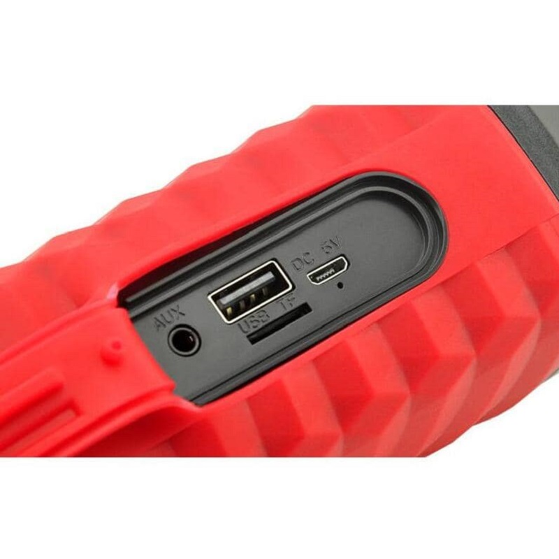 Chức năng: bluetooth, thẻ nhớ (microSD tối đa 64gb), USB, AUX (từ thiết bị qua loa bằng cổng 3.5mm), FM, đèn pin, kiêm sạc dự phòng