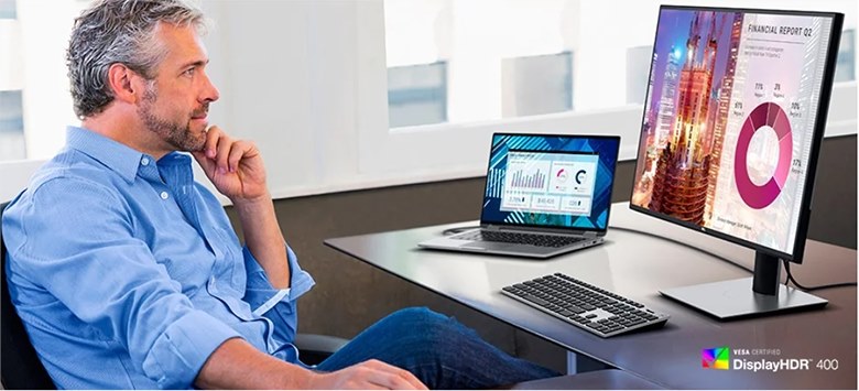 Với góc nhìn mở rộng đến 178 độ kết hợp cùng tấm nền IPS màn hình Dell UltraSharp U2720Q cho phép bạn nhìn rõ hình ảnh rực rỡ, sắc nét từ mọi góc. Dù bạn đang đứng hay ngồi hoặc nhìn xa mọi nội dung xem chi tiết như biểu đồ, bảng số liệu đều được hiển thị chính xác và rõ ràng, nâng cao hiệu suất khi làm việc nhóm.