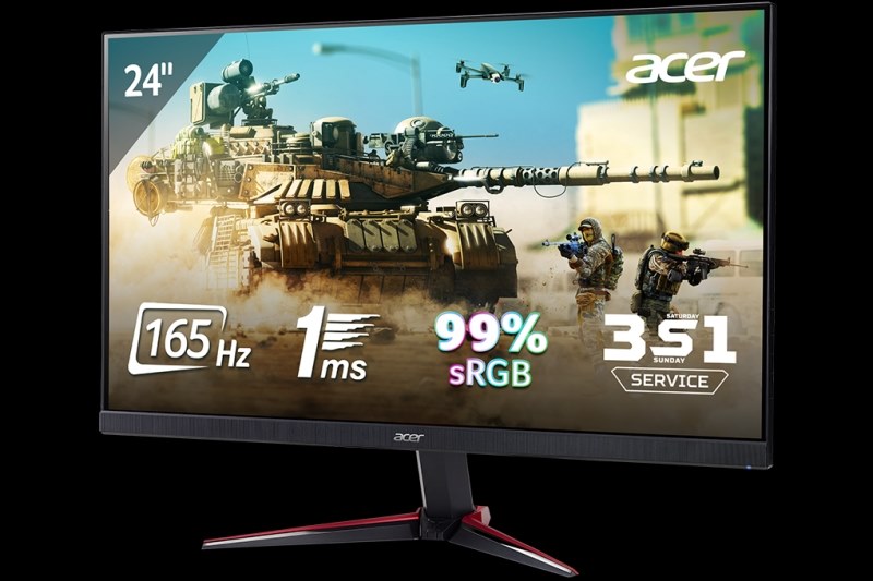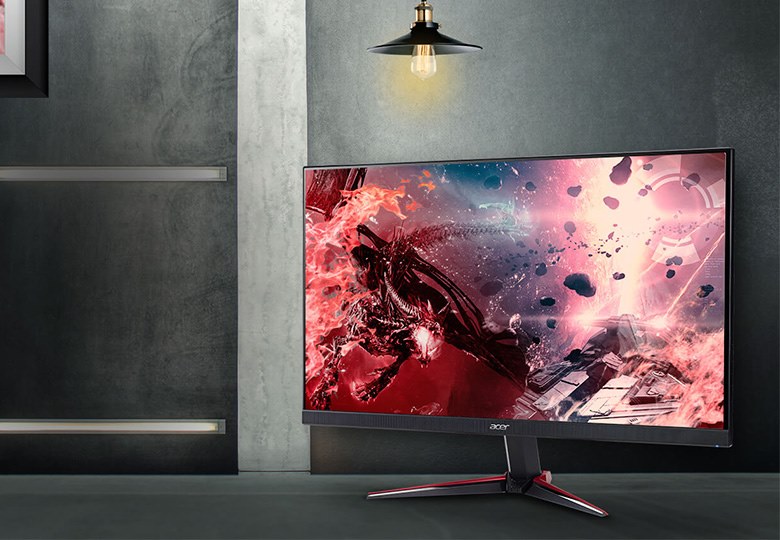 Màn hình máy tính Gaming Acer độ phân giải Full HD, tỉ lệ màn hình 16:9 cùng màn hình phẳng tràn viền sang trọng, độ sáng 250 cd/m2 với khả năng hiển thị 16,7 triệu màu sắc cho hình ảnh hiển thị sống động, rực rỡ hơn để các game thủ đắm chìm trong những pha hành động kịch tính hay những khung cảnh tuyệt đẹp trong những game phiêu lưu đồ họa sống động.