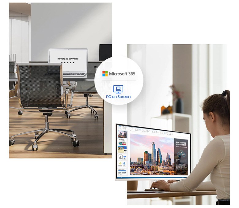 Màn hình máy tính Samsung có thiết kế mỏng nhẹ kích thước lớn 31,5 inch đáp ứng mọi nhu cầu làm việc, giải trí của bạn. Hoàn thành công việc nhanh chóng và hiệu quả hơn mà không cần máy tính với Office 365 cùng với tính năng truy cập từ xa tới máy tính văn phòng ngay tại nhà khi có việc gấp mà không cần đến văn phòng vô cùng tiện lợi.