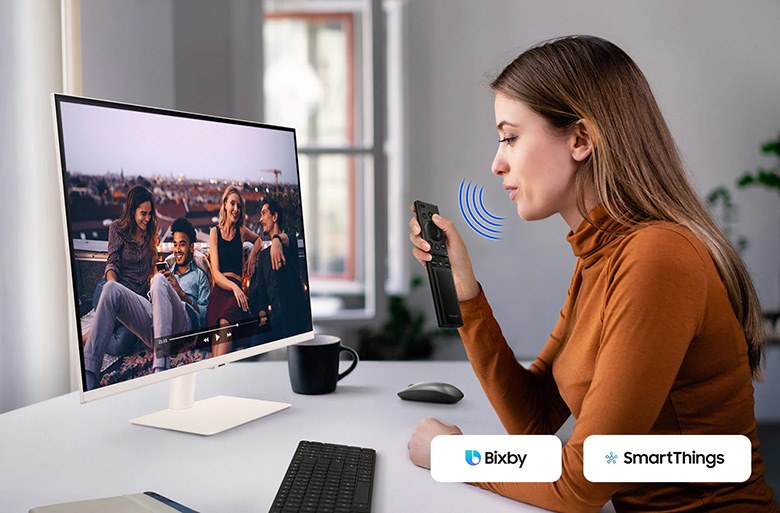 Chỉ cần nói vào remote màn hình nội dung bạn cần mở màn hình sẽ thực hiện theo yêu cầu của bạn. Với ứng dụng SmartThings trợ lý giọng nói đắc lực cho phép bạn mở các ứng dụng, điều khiển video, xem những nội dung yêu thích thông qua giọng nói vô cùng đơn giản và tiện lợi.