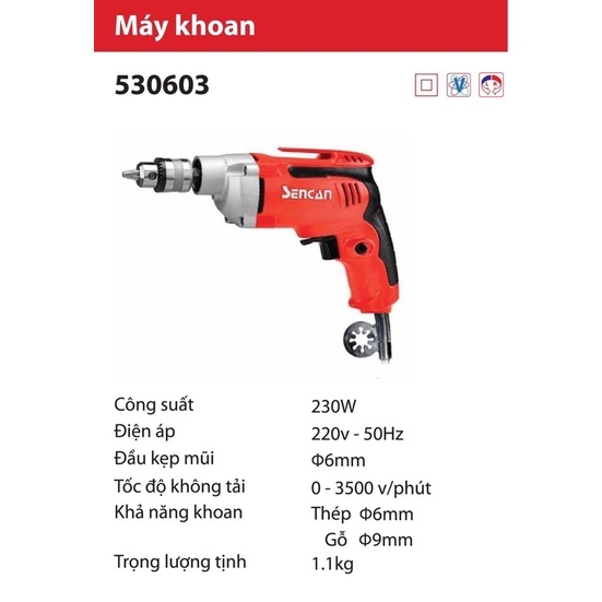 Máy Khoan bắt vít SENCAN 530603 chính hãng công suất 230W – 6mm