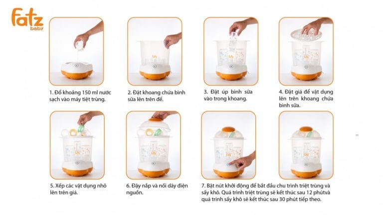 * HƯỚNG DẪN SỬ DỤNG MÁY TIỆT TRÙNG HƠI NƯỚC SẤY KHÔ FATZ BABY FB4906SL: