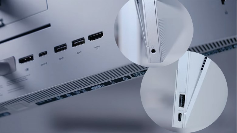 Máy tính All In One HP EliteOne 800G6 tích hợp đầy đủ cổng kết nối thông dụng ở mặt lưng và 2 cạnh bên giúp người dùng dễ dàng tiếp cận như cổng USB 3.2 gen 2 Type A, cổng USB 3.2 gen 2 Type C cho các kết nối tốc độ cao, cổng mạng RJ45, HDMI, DP,… Kết nối không dây Wifi và Bluetooth đảm bảo sự gọn gàng, hạn chế dây nối rắc rối mà vẫn mang tới sự ổn định, liền mạch. Máy hỗ trợ cổng HDMI-In, đồng nghĩa với việc có thể sử dụng HP EliteOne 800 G6 AiO như một màn hình khi được kết nối với PC, laptop khác.