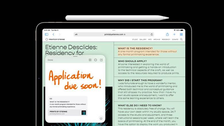 Một số tính năng thông minh trên iPad Air 5 như: Quick Note (ghi chú nhanh), SharePlay (kết nối với bạn bè), Live Text,…