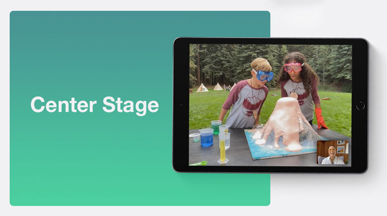 iPad 9 trang bị camera trước 12 MP có góc chụp siêu rộng, tăng cường đáng kể chất lượng hình ảnh giúp chụp ảnh selfie rõ nét ngay cả khi chụp nhóm đông người. Đồng thời giúp thu được hình ảnh rộng và sắc nét hơn khi thực hiện video call, FaceTime. Camera trước tương trợ tính năng Center Stage tự động pan và zoom camera trong lúc gọi video call để điều chỉnh chủ thể luôn nằm trong khung hình, kể cả khi di chuyển qua vị trí khác. Khi khung hình xuất hiện người thứ 2, iPad sẽ tự động zoom out để đảm bảo người kia cũng nằm trong khung hình.