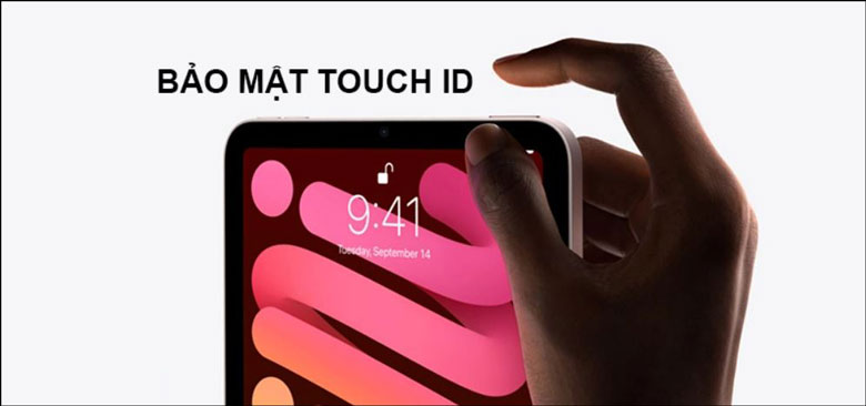 iPad Mini 6 được trang bị cảm biến vân tay Touch ID tích hợp vào phím nguồn cạnh trên giúp xác thực và mở khóa máy nhanh chóng đồng thời nâng cao tính bảo mật cho thiết bị cá nhân của bạn.