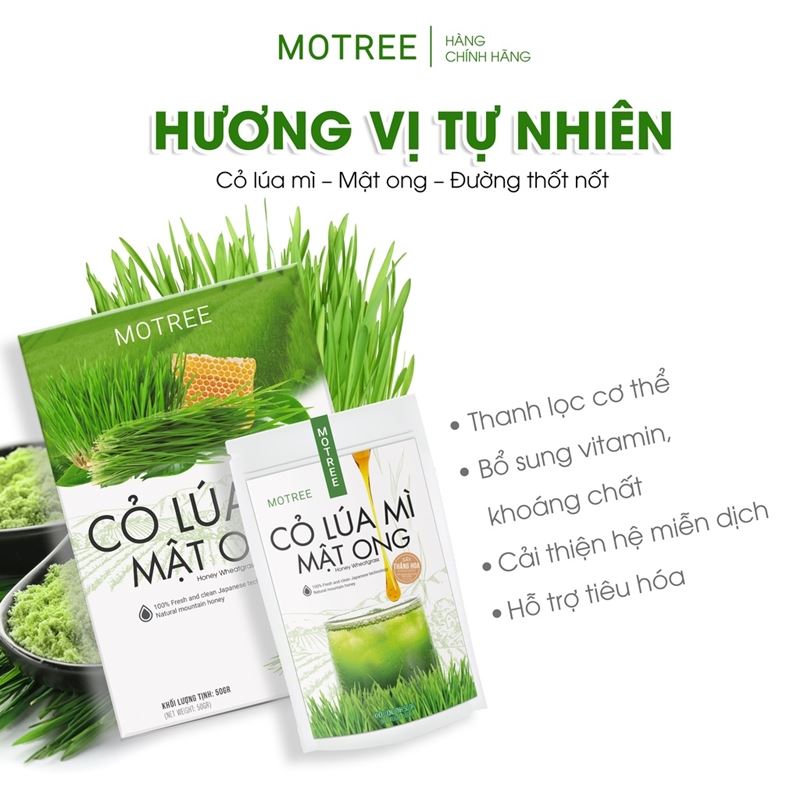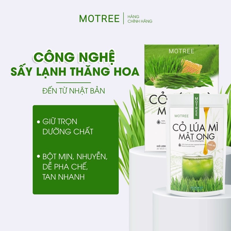Bột cỏ lúa mì mật ong sấy thăng hoa công nghệ Nhật Bản, một sản phẩm cải thiện sức khỏe đến từ thương hiệu Motree. Nhờ sử dụng dây chuyền công nghệ Nhật Bản, giúp giữ lại đến 98% chất dinh dưỡng đồng thời mang đến thức uống thơm ngon mát lạnh. Ngoài ra, sự kết hợp độc đáo giữa cỏ lúa mì và mật ong đã tạo nên hương vị ngọt ngào và sảng khoái. Sản phẩm dạng bột mịn, không cần đun sôi, dễ pha chế, không cần sơ chế hay ép, bạn chỉ cần 30 giây là có ngay một thức uống thơm ngon. Bột cỏ lúa mì mật ong đã được Bộ Y tế cấp phép lưu hành nên bạn có thể yên tâm sử dụng. Ngoài ra, sản phẩm hỗ trợ giảm cân an toàn mà vẫn bổ sung các dưỡng chất cần thiết mà không cần phải nhịn ăn.
