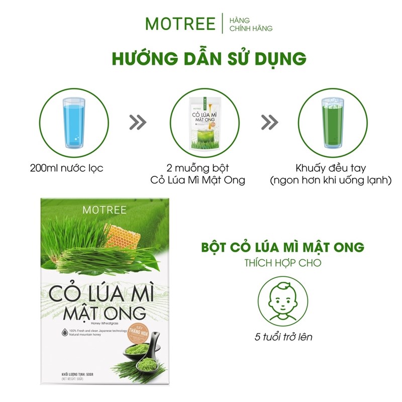 Bột cỏ lúa mì mật ong sấy thăng hoa công nghệ Nhật Bản Motree- Thanh lọc cơ thể, giữ dáng hiệu quả