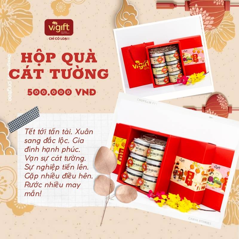 Một mùa xuân mới sắp sửa về với mọi nhà. Đây là thời điểm thích hợp nhất để bạn chuẩn bị những món quà phù hợp gửi tặng gia đình, bạn bè hay khách hàng cho dịp tết cuối năm. Tham khảo Hộp Quà ViGift 6 Cát Tường làm quà tặng chất lượng và mang nhiều ý nghĩa nha