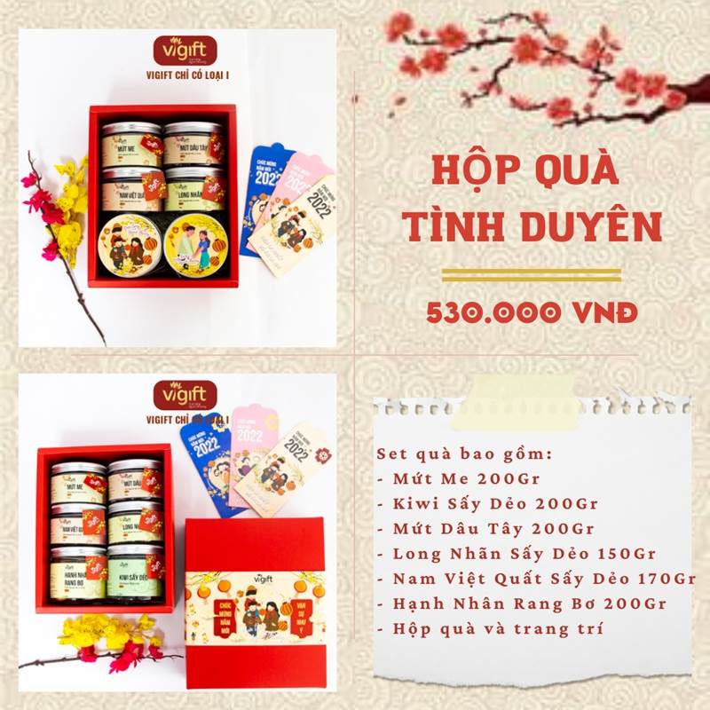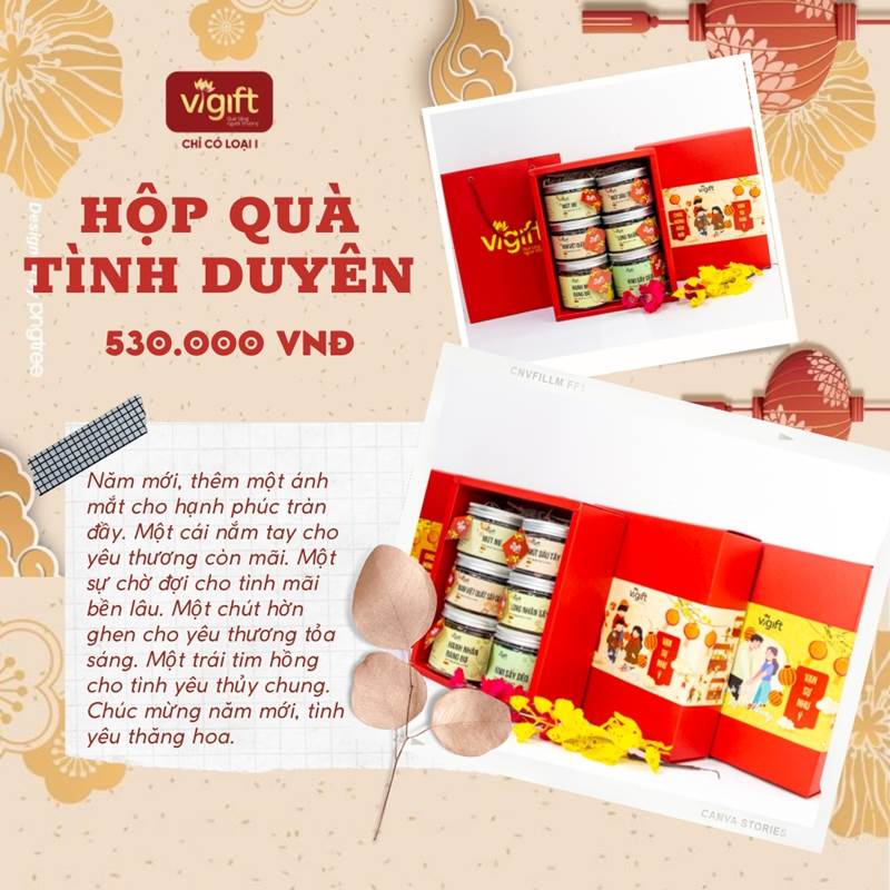 Một mùa xuân mới sắp sửa về với mọi nhà. Đây là thời điểm thích hợp nhất để bạn chuẩn bị những món quà phù hợp gửi tặng gia đình, bạn bè hay khách hàng cho dịp tết cuối năm. Tham khảo Hộp Quà ViGift 6 Tình Duyên làm quà tặng chất lượng và mang nhiều ý nghĩa nha