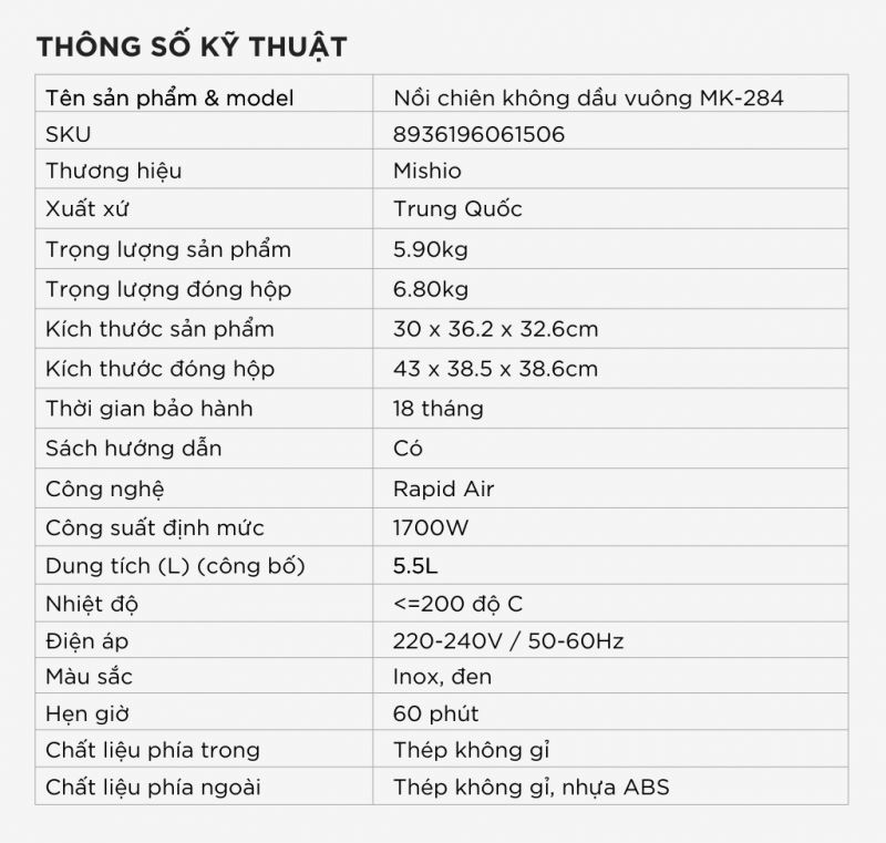 Hãy là người đầu tiên nhận xét “Nồi Chiên Không Dầu Mishio MK284”