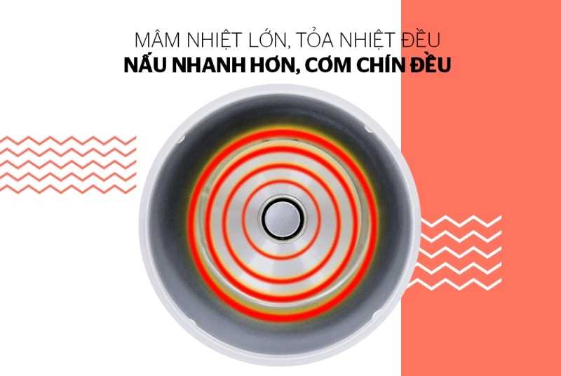 – Đường kính mâm nhiệt lớn, tỏa nhiệt đều, cơm chín ngon