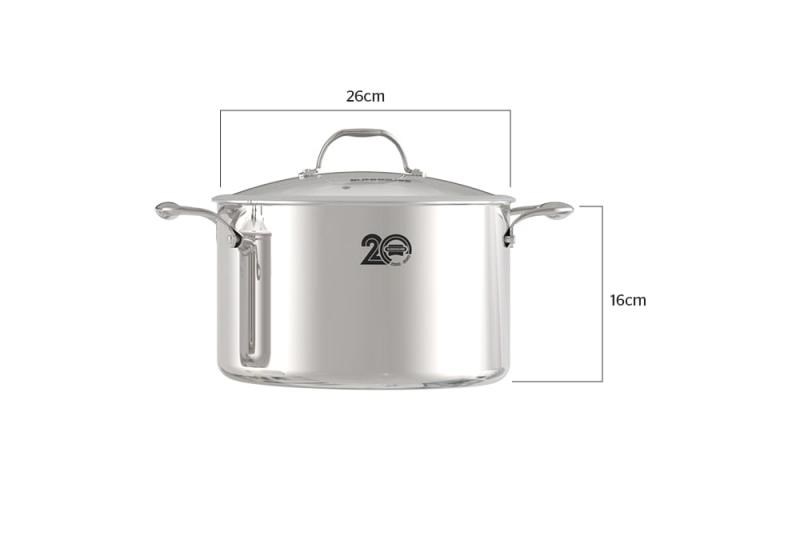 Kích thước: Đường kính lòng nồi: 26 cm Chiều cao thân nồi: 16 cm Độ dày thành nồi: 0.2 cm
