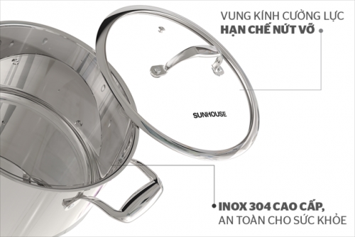 SUNHOUSE MAMA là thương hiệu đồ gia dụng phân khúc trung cao của Tập đoàn SUNHOUSE. Với đặc điểm nổi bật về diện mạo tinh tế và tính năng an toàn cho sức khỏe, SUNHOUSE MAMA chính là mảnh ghép hoàn hảo cho căn bếp hiện đại của mọi gia đình Việt. Nồi inox 304 đa lớp SUNHOUSE MAMA SHG2020-26 được làm từ chất liệu inox 304 cao cấp, kiểu dáng tinh tế, vung kính cường lực, quai núm inox chắc chắn, bền đẹp. Sản phẩm có kích thước 26 cm thích hợp để nấu những món ăn cho 3 – 5 người.