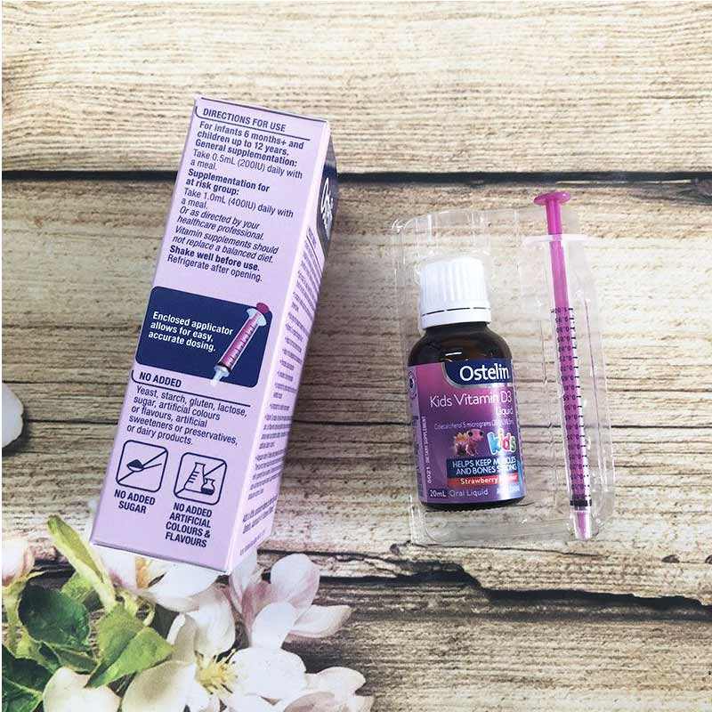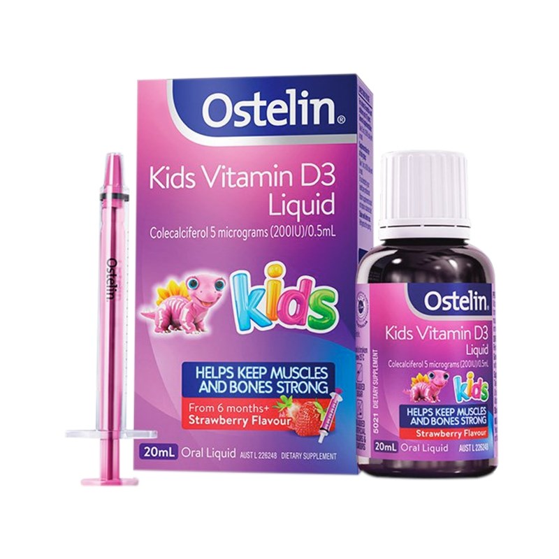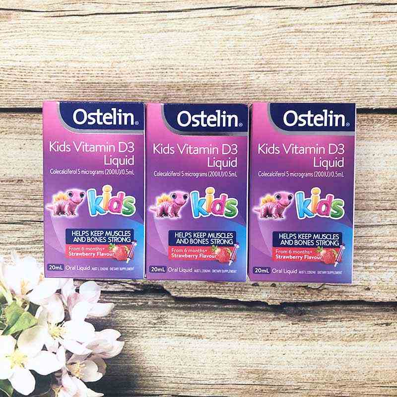 Vitamin D là một trong những loại vitamin thiết yếu cần được chú trọng bổ sung trong giai đoạn đầu đời, ảnh hưởng nhiều đến sự tăng trưởng của trẻ. Muốn có cơ hội tăng trưởng chiều cao tối đa, bố mẹ cần bổ sung Canxi và Vitamin D đầy đủ. Thiếu vitamin D sẽ khiến trẻ gặp các triệu chứng như rối loạn tiêu hóa kéo dài, còi xương,…Do vậy bạn cần nên bổ sung Vitamin D Ostelin dạng nước cho trẻ Ostelin Vitamin D Kids Liquid 20ml của Úc để giúp bé hấp thụ được tốt hơn.