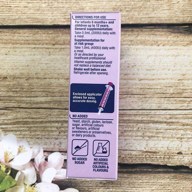 Thành phần của Vitamin D dạng nước cho trẻ từ 6 tháng tuổi Vitamin D Liquid Kids