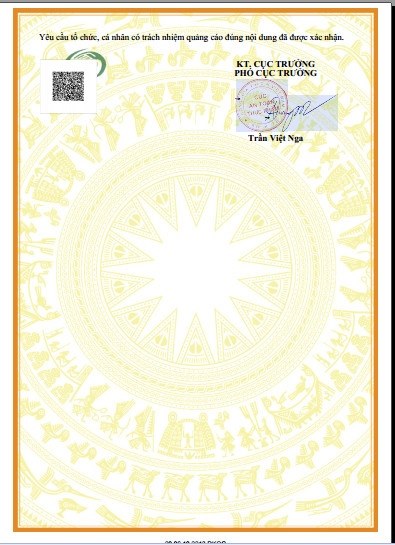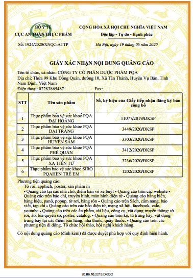 Số XNQC: 1924/2020/XNQC-ATTP