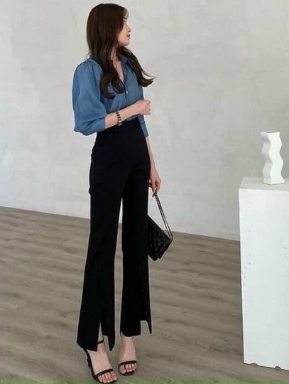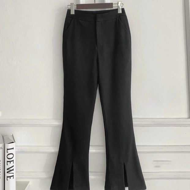 QUẦN ỐNG LOE NỮ CẠP CAO XẺ TÀ DÁNG DÀI CHẤT TUYẾT MƯA CO GIÃN NHẸ VNQ0222