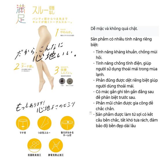 Tên sản phẩm: Quần Tất Manzoku Thoáng Mát Không Tưa Rách