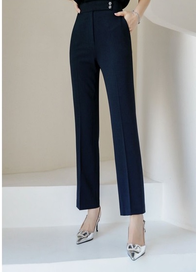 Tên sản phẩm: Quần Tây Công Sở Nữ Màu Xanh Than Đính 2 Khuy Trang Trí, Kiểu Suông Đứng Trẻ Trung, Thanh Lịch Kqm135 – Quyên Fashion