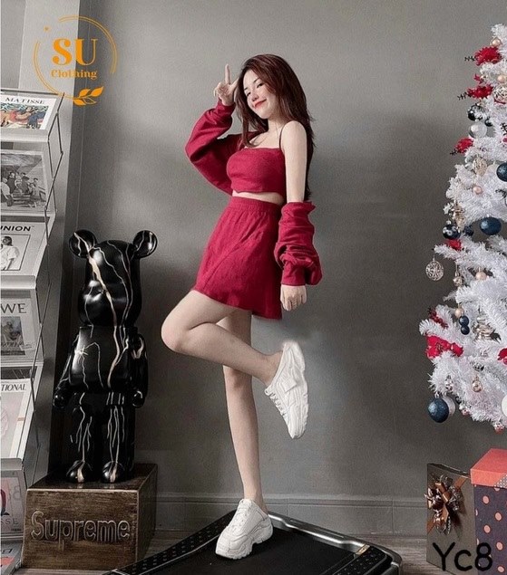 Tên sản phẩm: Set 3 Món Áo Dây Crop Mix Chân Váy Xòe Kèm Áo Khoác – Su Clothing