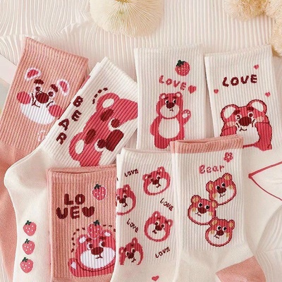 SET 5 ĐÔI VỚ TẤT CỔ CAO COTTON GẤU DÂU SIÊU CUTE ST001 – NANA HOUSE