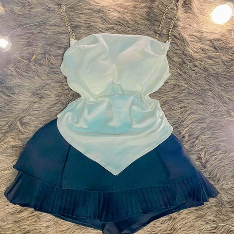 Tên sản phẩm: Set Áo 2 Dây Xích Kèm Chân Váy Dập Ly – Lê Phương Boutique