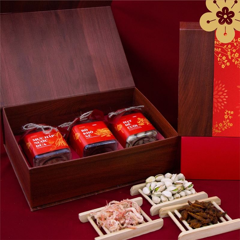 Set quà Hạnh Phúc 2 với những món mặn thường được dùng trong dịp Tết Nguyên Đán.
