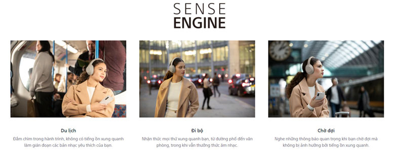 + Theo thời gian, SENSE ENGINE có thể nhận biết được các địa điểm bạn thường xuyên ghé thăm (quán cafe, thư viện, nơi làm việc,..) và điều chỉnh âm thanh phù hợp tự động với tình huống.