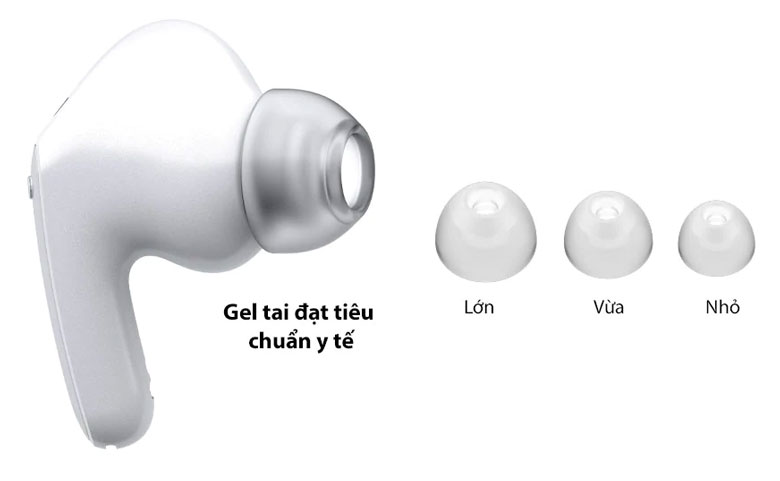 Bên cạnh công nghệ UVnano, LG còn trang bị gel tai sillicon tiêu chuẩn y tế, giúp TONE Free FP8 an toàn và không gây dị ứng cho người dùng. Hãng còn trang bị 03 kích thước gel tai nghe, cho phép bạn lựa chọn kích thước phù hợp và ôm khít nhất, tăng hiệu quả chống ồn và tái tạo không gian âm thanh sống động.