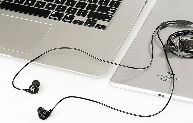 Tai nghe IE 60 sở hữu lớp áo ngoài màu đen mạnh mẽ, kết hợp viền kim loại vàng tạo nên cảm giác sang trọng và đầy tinh tế.