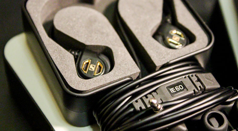 Tai nghe IE 60 sở hữu lớp áo ngoài màu đen mạnh mẽ, kết hợp viền kim loại vàng tạo nên cảm giác sang trọng và đầy tinh tế.
