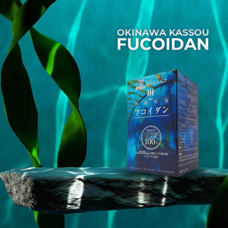Chiết xuất tảo nâu Mozuku ở vùng biển Okinawa, Nhật Bản cho ra hàm lượng Fucoidan trên mỗi viên là 220mg.