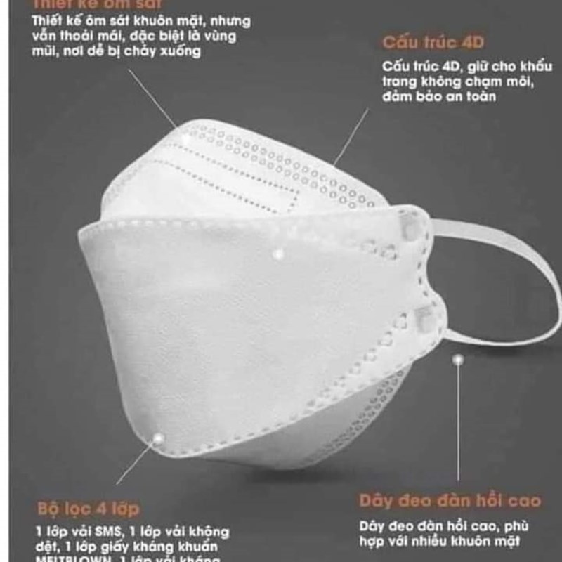 Đạt chuẩn KF94 (chống bụi vàng, bụi siêu nhỏ, bệnh truyền nhiễm).