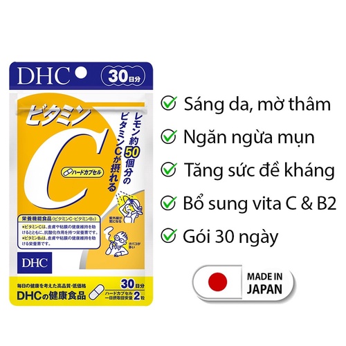 Viên uống Vitamin C – DHC cung cấp cho cơ thể 1000mg vitamin C mỗi ngày, từ đó giúp tăng sức đề kháng, ngừa cảm cúm, đồng thời kích hoạt khả năng tự làm lành các vết thương từ bên trong cơ thể.