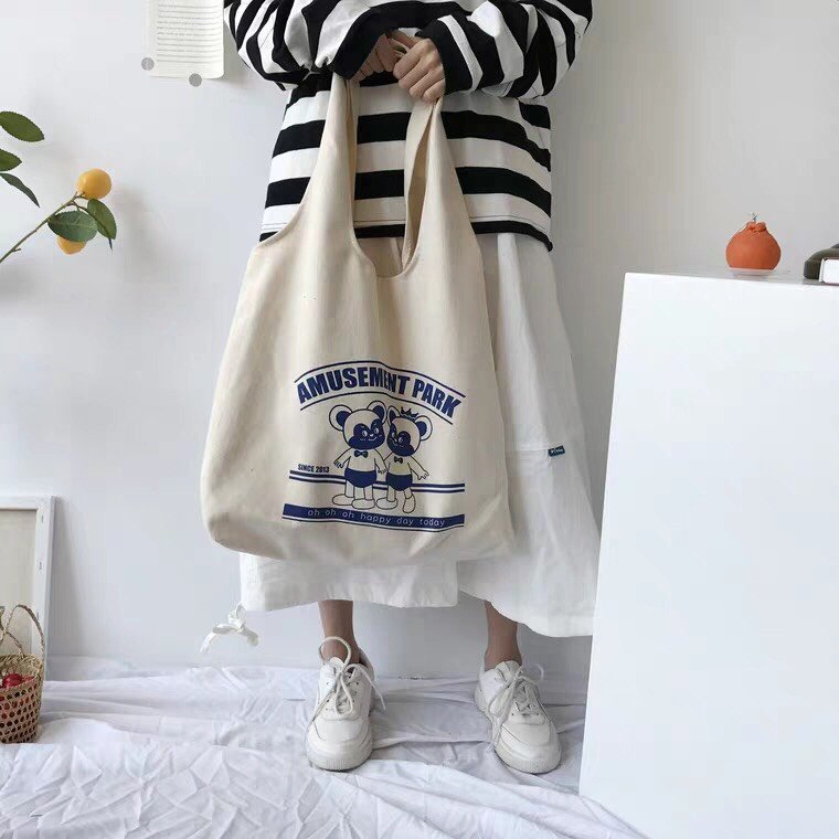 Tote In Chuột Amusement vải Kaki Hàn chất lượng cao kết hợp quai cá tính đang là mẫu túi thu hút sự chú ý của đông đảo các teengirl sành điệu.
