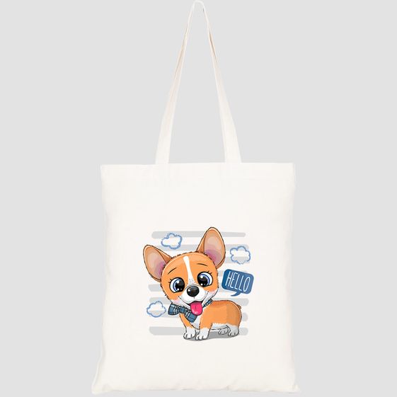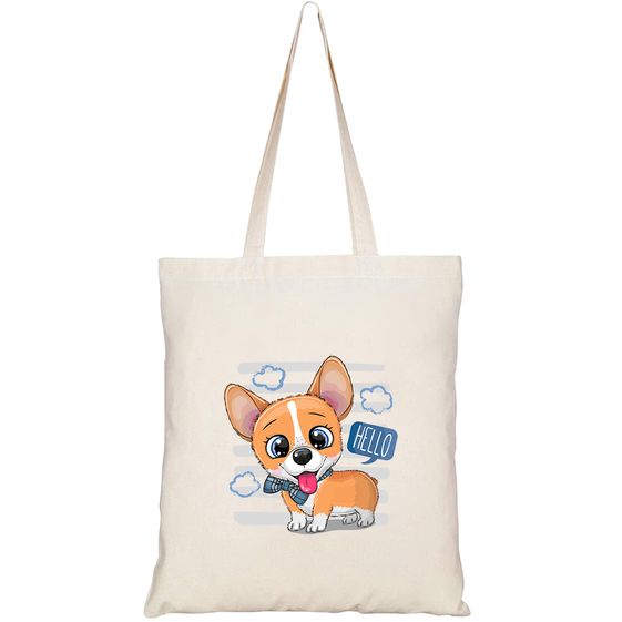 TÚI VẢI TOTE CANVAS IN HÌNH CUTE CARTOON DOG CORGI BOWTIE HT390 – HTFASHION