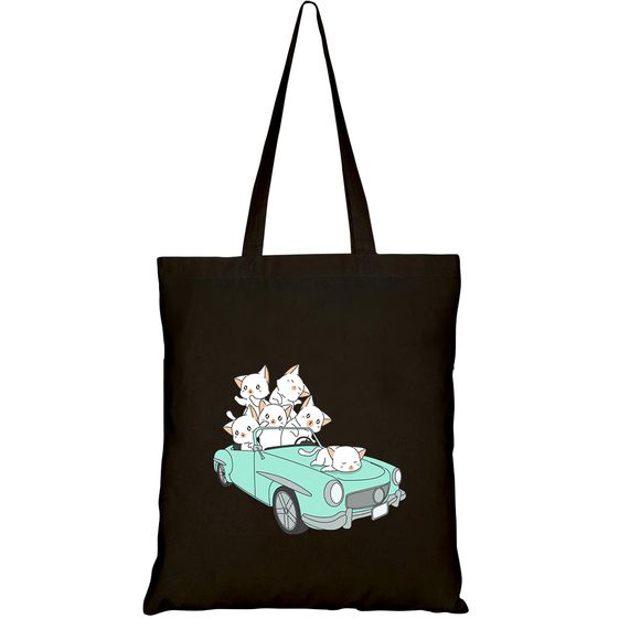 Tên sản phẩm: Túi Vải Tote Canvas In Hình Drawn Kawaii Cats Green Car HT172 – HTFashion
