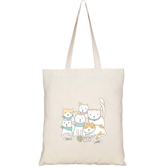 TÚI VẢI TOTE CANVAS IN HÌNH HANDDRAWN CUTE ANIMALS CATS CARTOON HT166 – HTFASHION