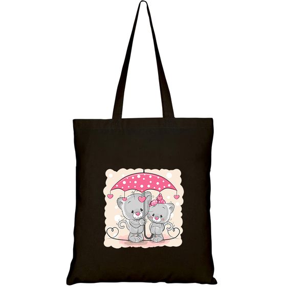 TÚI VẢI TOTE CANVAS IN HÌNH TWO CUTE CARTOON KITTENS UMBRELLA HT459 – HTFASHION
