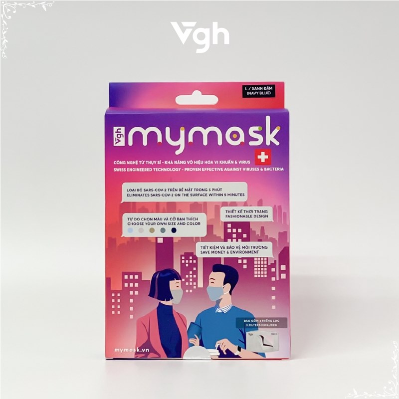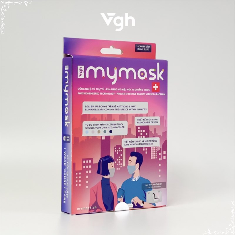 Khẩu trang vải MyMask xoá sổ virus, vi khuẩn nhờ khoa học Thụy Sĩ ưu việt, có tấm lọc 4 lớp, có 5 màu sắc thời trang, phong cách dễ phối đồ, hộp 1 chiếc tặng kèm 3 tấm lọc