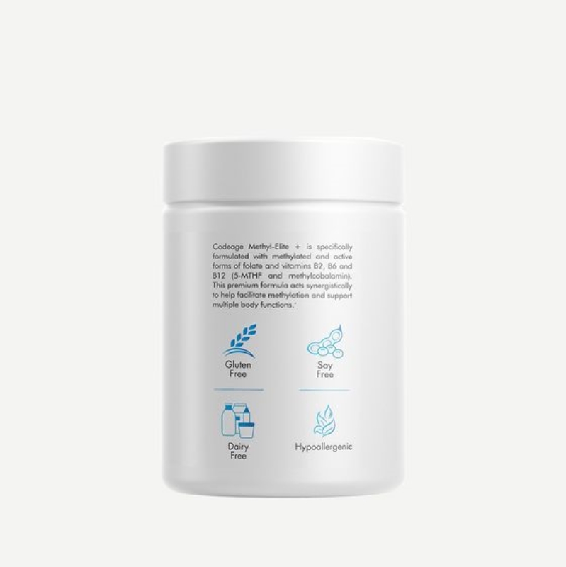 Codeage Methyl-Elite + được đặc chế với các dạng hoạt tính và Methyl hóa của Folate và vitamin nhóm B. Cung cấp 5-MTHF Folate với Quatrefolic® 5 Methylfolate và muối Glucosamine.
