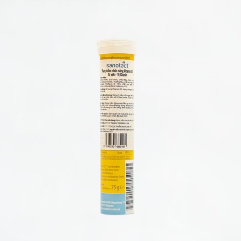 Thành phần: Vitamin D3, Dextrose (40%), Acid citric, Natri hydrocarbonate, natri cyclamate, natri Saccharin, E101