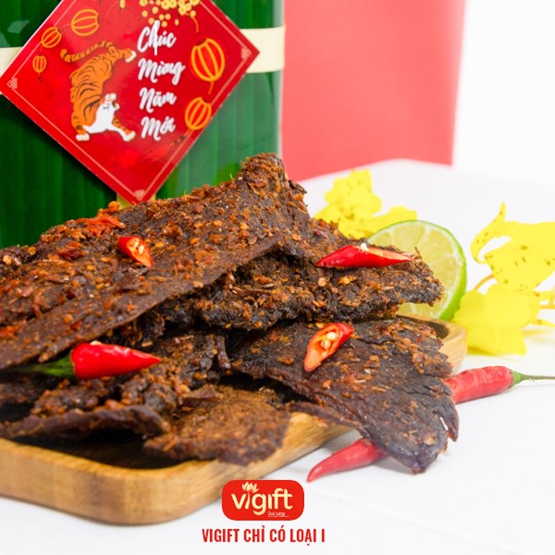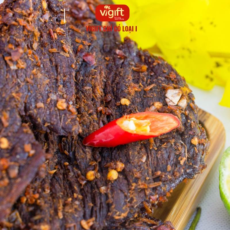 Bò khô nguyên miếng ViGift là một trong những món đặc sản của đà nẵng được du khách biết đến trong thời gian gần đây. từng mảng bò thơm ngon được tẩm ướp gia vị với màu sắc sặc sỡ.